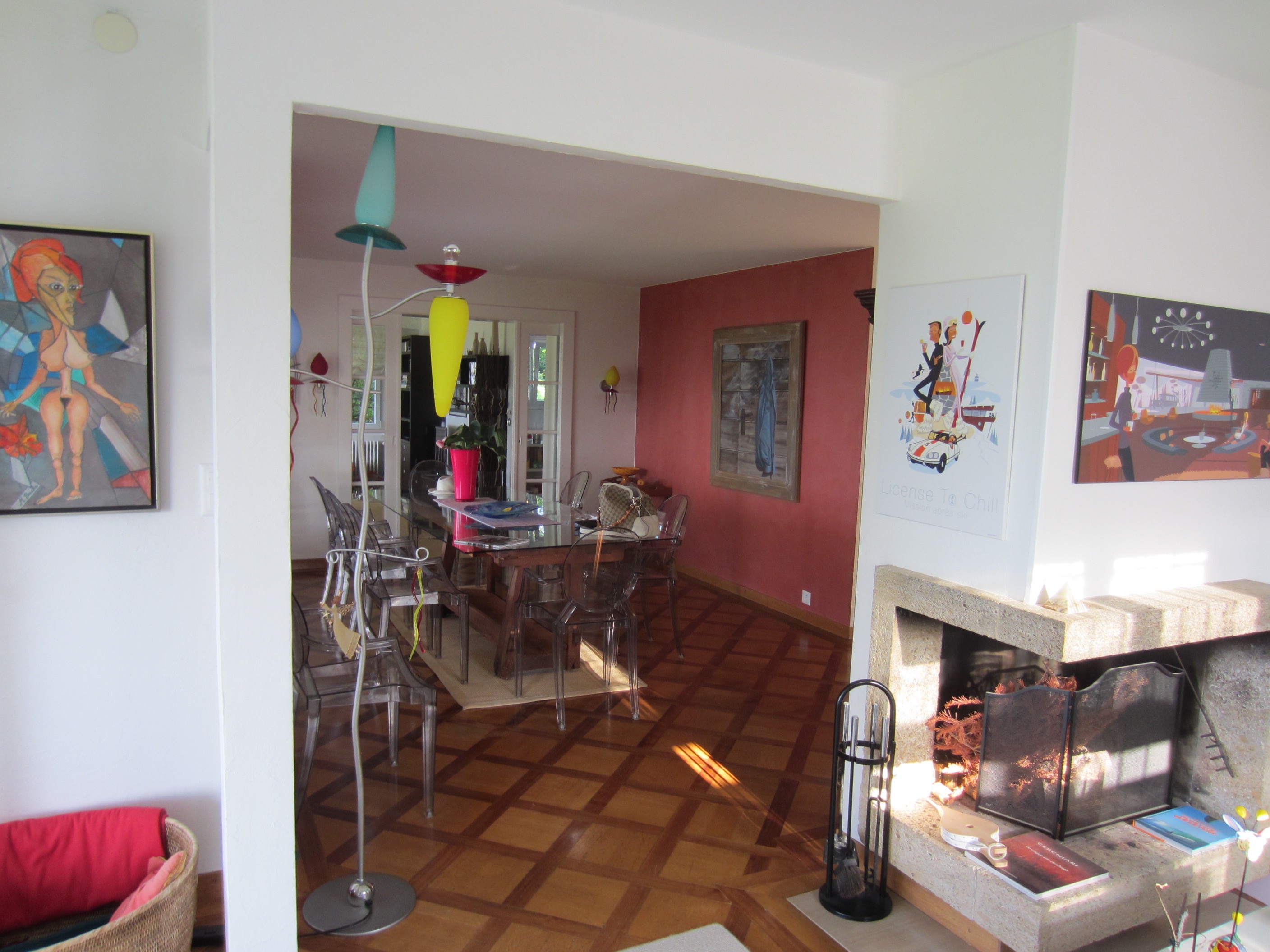 Salon avec Cheminée Française donnant sur la Terrasse et la Loggia
