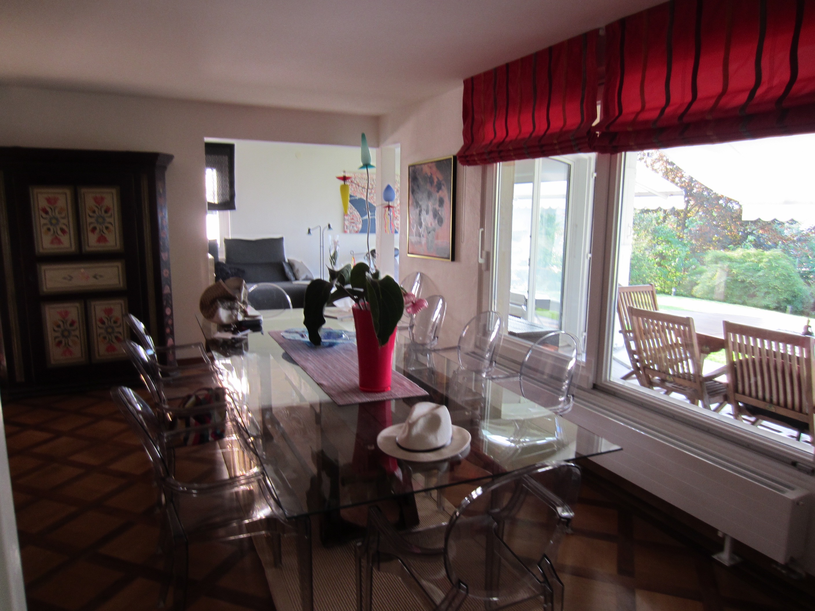 Salle à manger donnant sur la terrasse et le magnifique jardin